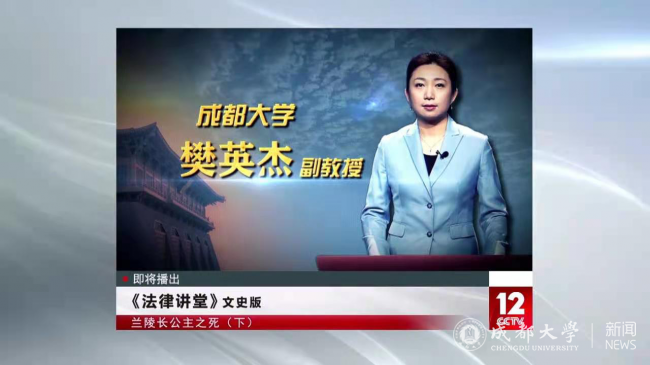 《法律讲堂》(文史版)栏目是一档弘扬法治精神、传播法律文化和法治思想的节目。樊英杰副教授受邀作为中央电视台社会与法频道(CCTV-12)《法律讲堂》(文史版)栏目主讲专家参与《兰陵长公主之死》节目策划与录制。