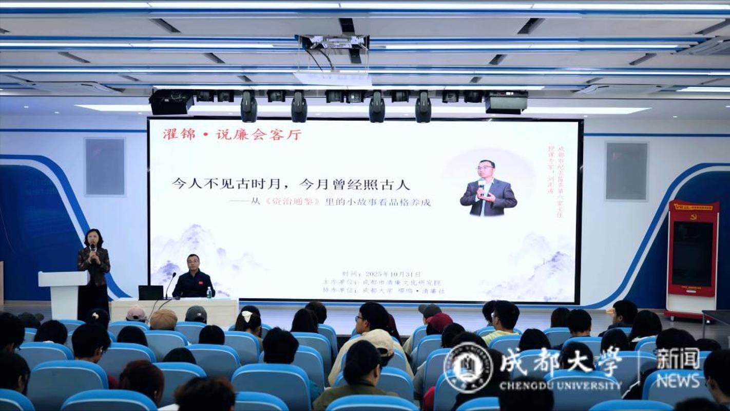 10月31日,成都市清廉文化研究院在成都大学3131教室举办以《今人不见古时月,今月曾经照古人—从<资治通鉴>里的小故事看品格养成》为主题的学术讲座。