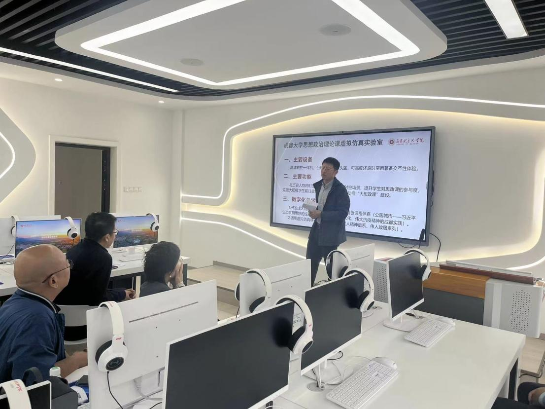 调研,在1教1307思想政治理论课虚拟仿真实验室听取工作汇报。其中有省委网信办副主任田刚、省委网信办网络综合治理处处长郑伟强、教育厅宣传思想与统战工作处副处长刘海峰来院调研,我校党纪委书记苏波、党委宣传部(CSGO投注平台信息与服务说明 ) 常务副部长胡屹陪同、党委网络安全与信息化委员会办公室主任肖乃田陪同,csgo投注