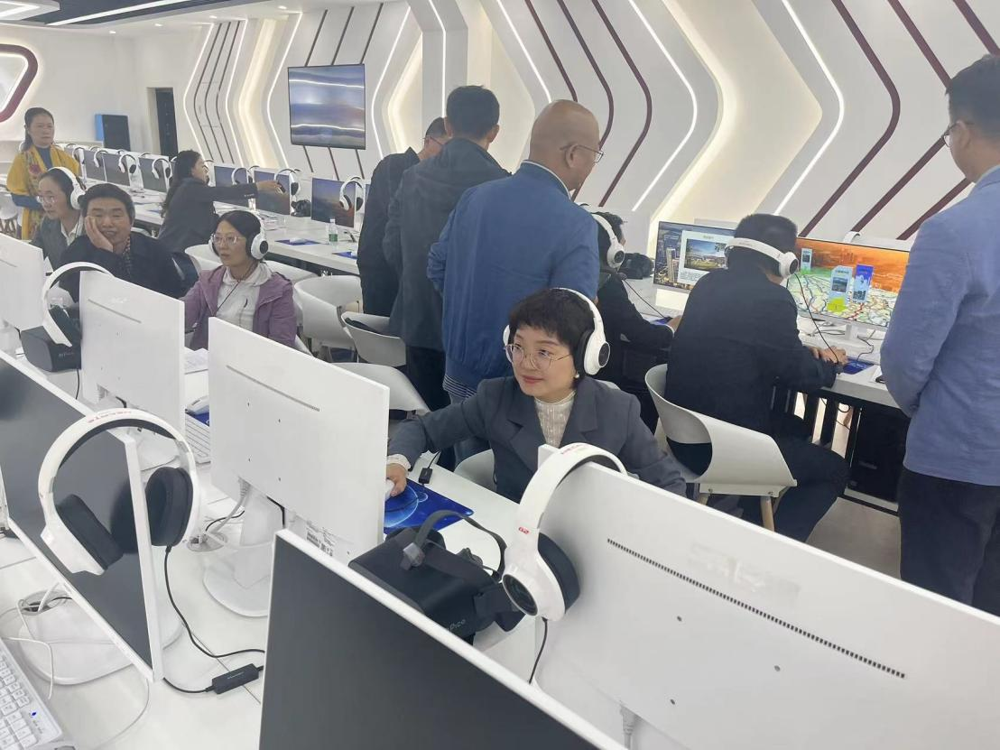 在1307虚拟仿真实验室,屈陆院长向网信办专家介绍了csgo投注