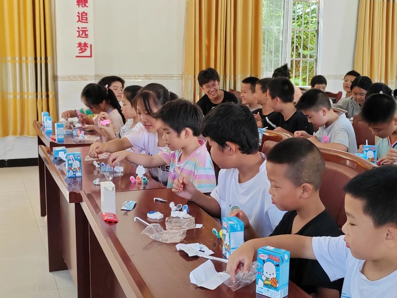 童梦舞台,眼里闪耀无限光芒。上午时分,一场以“童梦”为关键词分享会正式开始,服务团的志愿者们鼓励孩子们大声说出自己的梦想和未来的憧憬,有的孩子梦想成为医生治病救人,有的希望成为教师教书育人,还有的梦想成为一个无羁无绊洒脱自由的人……每一个梦想都闪耀着光芒,每一个声音都充满了力量。小朋友们心中的梦想之花,在夏日的蝉鸣声和鼓掌声的交织中,绚丽绽放。