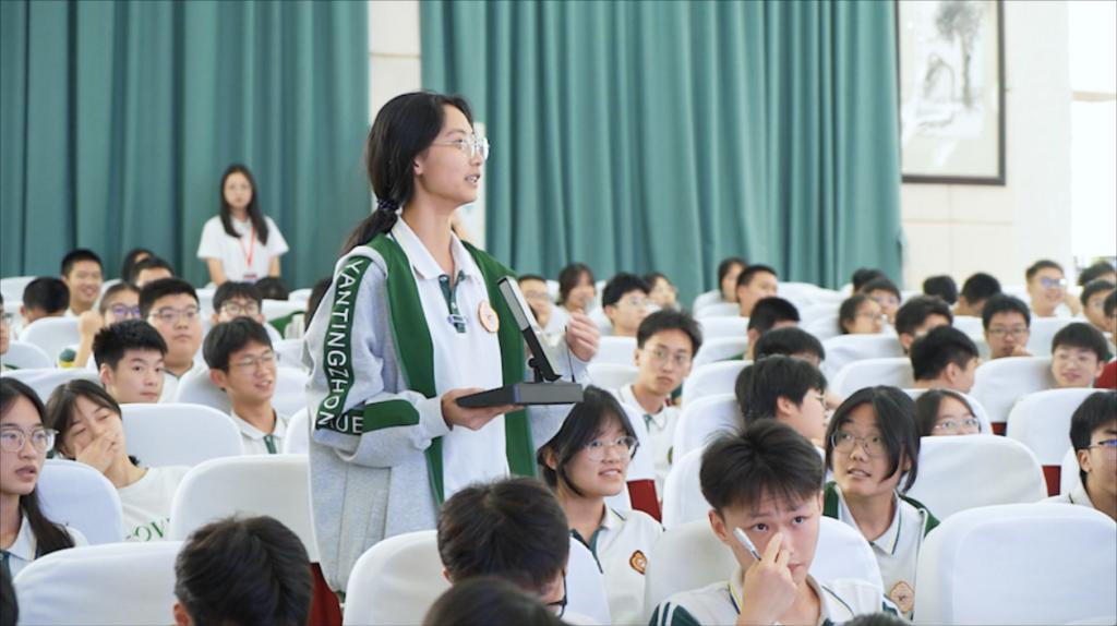 为了增加宣讲活动的趣味性,提升学生们的体验感和参与感,增加普法深度。实践队成员在宣讲过程中提出问题和盐亭中学的学生进行积极互动,有奖问答。图为盐亭中学一学生积极问答有关“正当防卫”的问题。