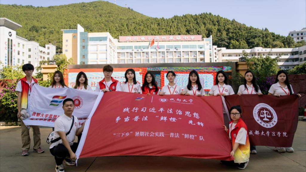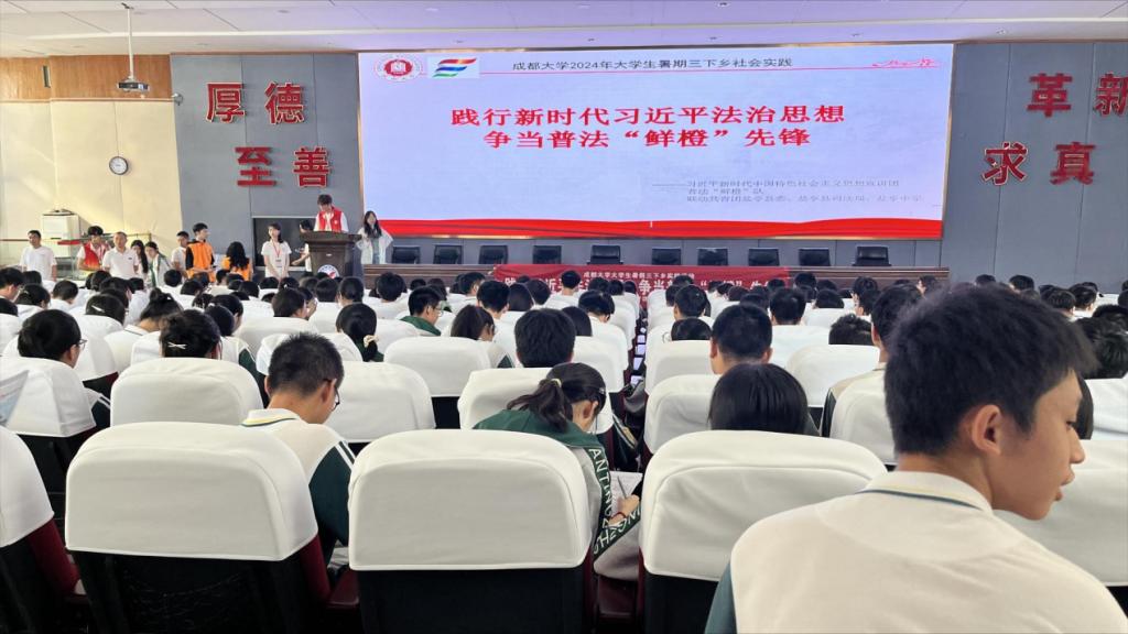 2024年7月3日,成都大学思想政治理论实践课暨大学生暑期“三下乡”社会实践活动团队--普法“鲜橙”队来到四川省绵阳市盐亭县,开展习近平法治思想宣讲活动,并且为盐亭县群众提供免费的法律咨询服务,积极担当青年普法责任,践行习近平法治思想,以下为活动照片记录。