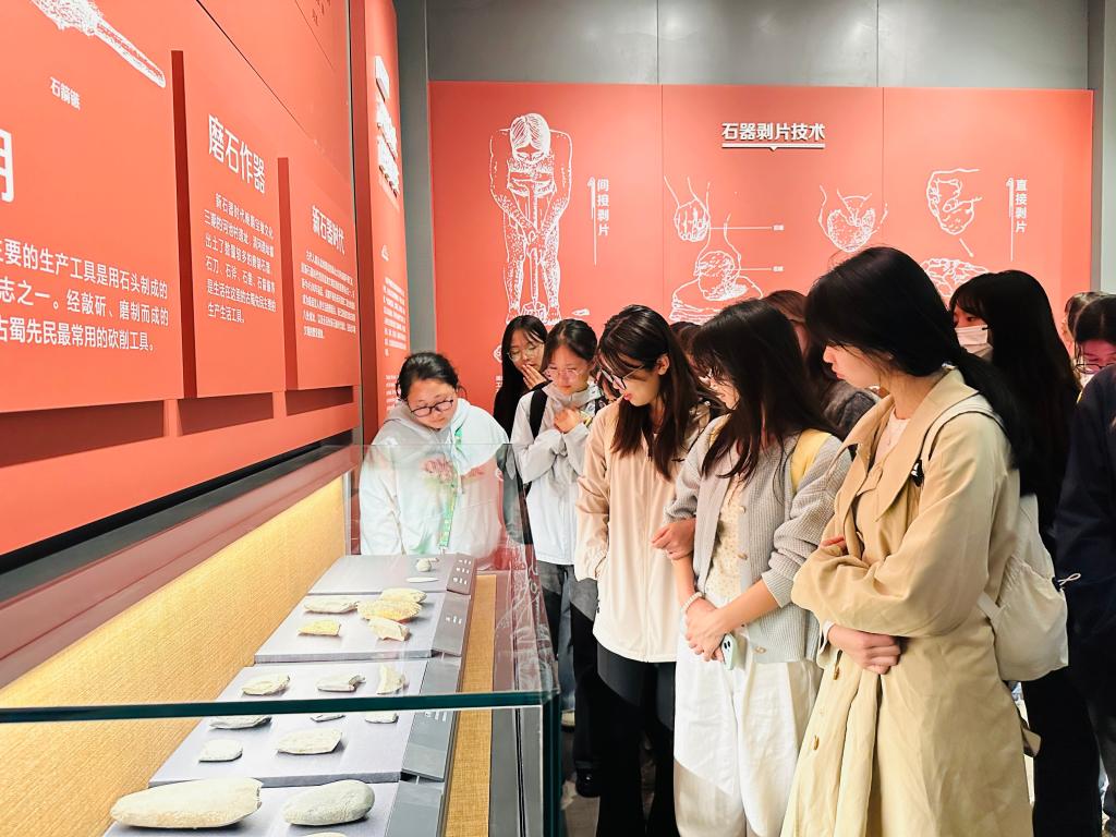 在博物馆中,同学们跟着讲解员老师的步伐,仔细聆听着每一件展品背后的故事。从序厅“都广之野”开始,同学们仿佛穿越了时空,回到了远古的成都平原,感受着先民们在这片土地上的生活与奋斗。石器时代的手斧、石刀,古蜀时期的陶器和青铜器,每一件文物都讲述着双流地区悠久的历史和灿烂的文化。