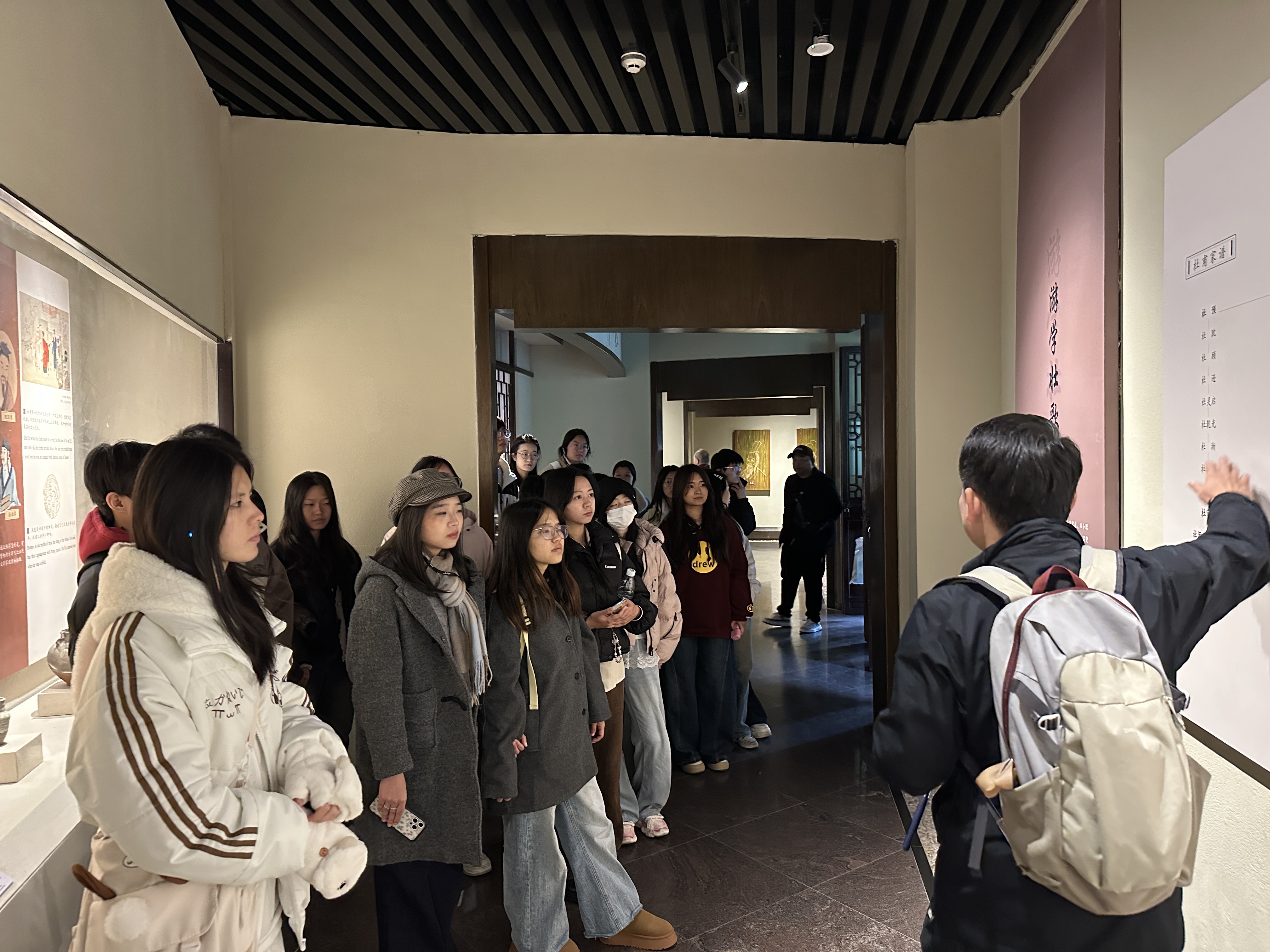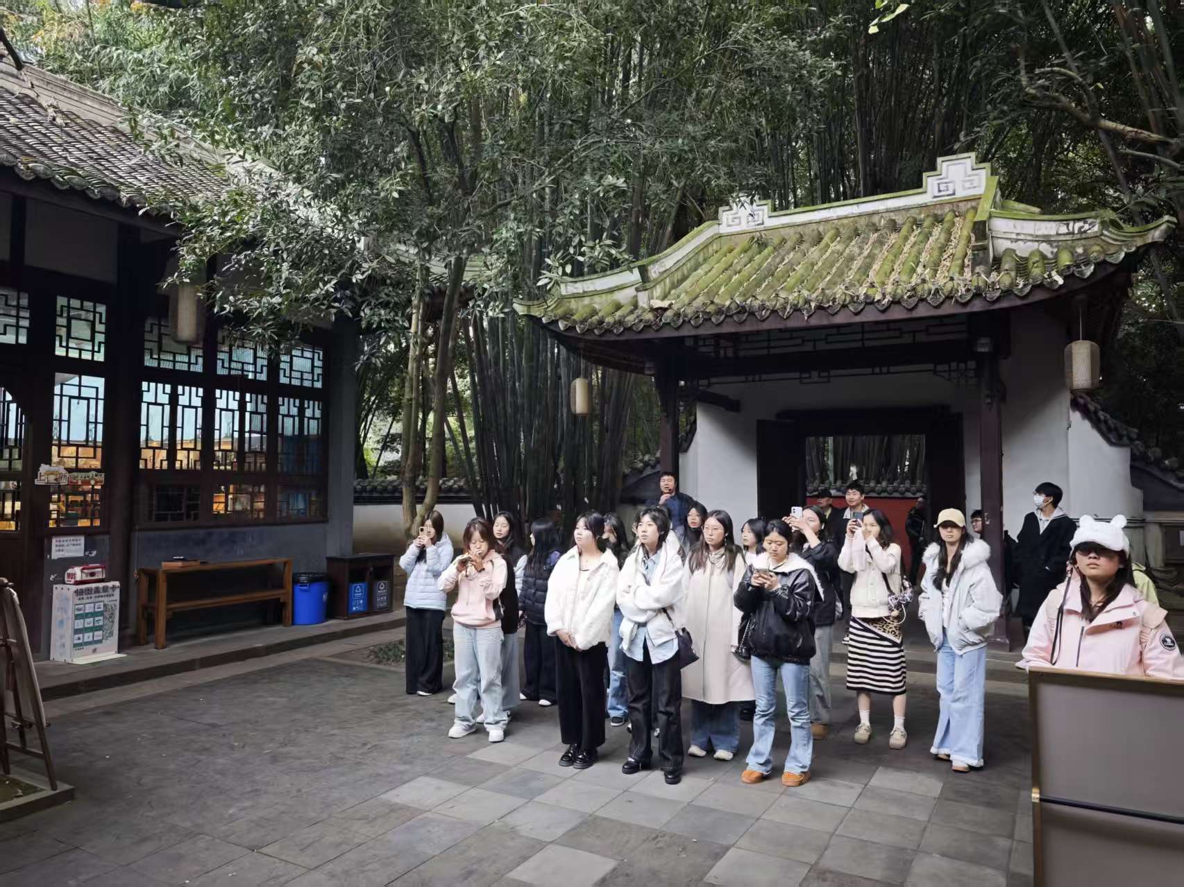 2024级思想政治教育专业全体同学,在秦晶、周后燕、朱昊三位老师的带领下乘车前往杜甫草堂博物馆,开展本学期“天府文化研究”课程第二次校外教学实践。此次活动以“探寻诗圣足迹,感悟天府文脉”为主题,将天府文化理论知识与文化实景深度融合,让同学们在沉浸式体验学习中深化对天府文化的认识,探索地方优秀传统文化融入思政教育的新路径。