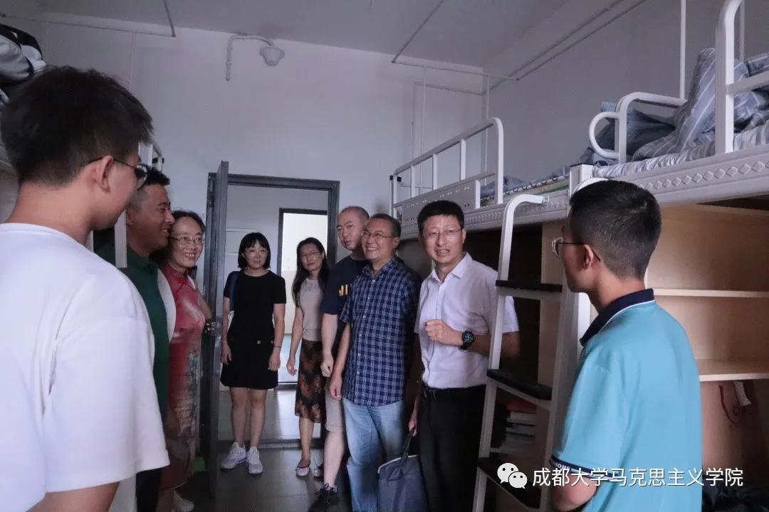 院长屈陆、副院长邱晓霞、教研室主任、辅导员、新生班主任等教师前往学生寝室8栋、10栋,走访慰问新生,关心川内外新生入校后生活情况,询问家乡所在地以及是否适应新环境,关心新生思想动态,叮嘱新生在注意防范诈骗,做好日常防护,希望同学们做好职业生涯规划,以饱满的精神迎接新的校园生活。