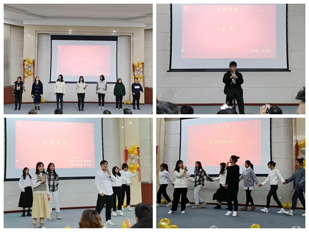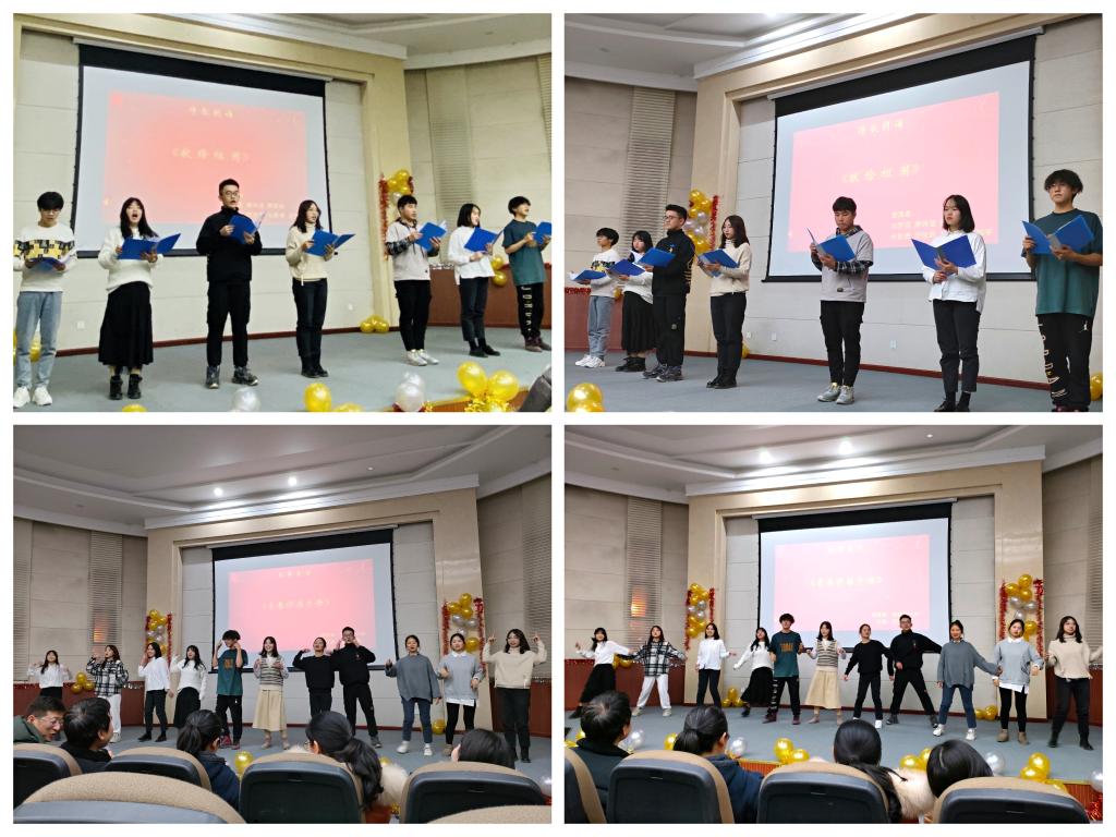 在联谊会过程中,同学们精心准备节目,《自然交响曲》唱出地域气息,唱出青春魅力;歌曲与舞蹈《告白气球》《青苹果乐园》《盛夏》或活泼俏皮,或柔美多姿,或清新流畅、意蕴悠长;诗歌朗诵《献给祖国》音乐欢快、气势磅礴,热血沸腾,激情四射。这些节目怀揣 2021年的美好愿望,描绘大学逐梦岁月的精彩画卷,让各位老师感受同学们的朝气和活力。
