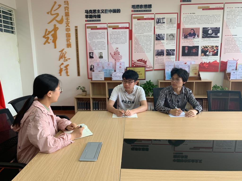 党建会议室与两名参与勤工助学的家庭经济困难学生开展谈心谈话。