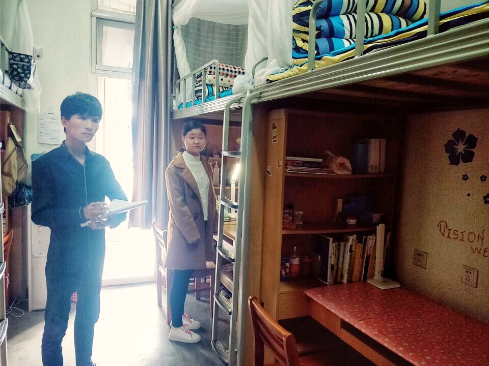 生活部率先检查的是大一同学的寝室,较上次走访结果看,此次大一同学们寝室环境有明显改善,但仍有不足有待改正。生活部的同学们对不足的地方提出改进意见,并表示后期的检查会尤其注意缺点的改进。随后一行人对大二、大三寝室进行检查,因在校时间更长,大二大三同学们的寝室更加有序,生活部干事表示希望大一同学能向他们学习。最后,检查结果显示虽然每个寝室不能做到尽善尽美,但是每个寝室都有自己突出的亮点,应加以发扬。