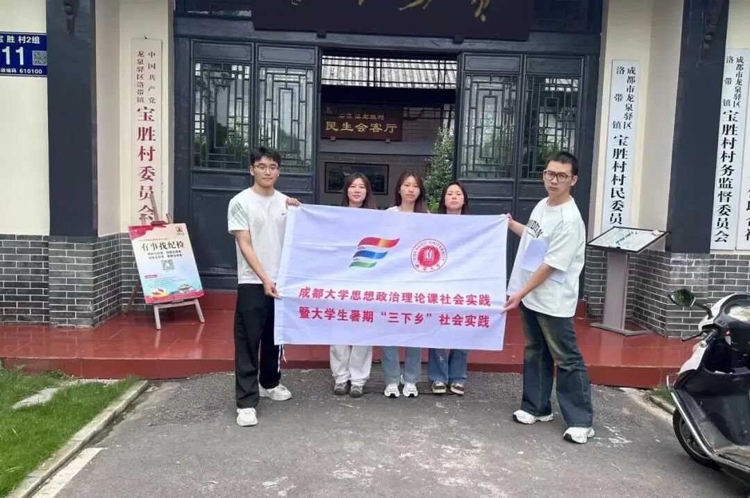 5名学生组成社会实践小组,积极参与学校组织的思想政治理论课社会实践暨大学生暑期“三下乡”社会实践活动,前往宝胜村开展民法典在乡村的宣传普及情况调研。