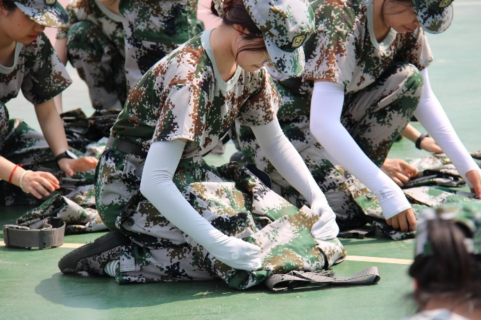 烈日炎炎,不少同学已经是满头大汗。为了预防中暑,同学们有序地脱下军装,在教官的指导下,同学们将军装按照步骤叠好放在一旁,靠着自身的毅力坚持到了最后一刻。没喊累,是因为我们坚强了。