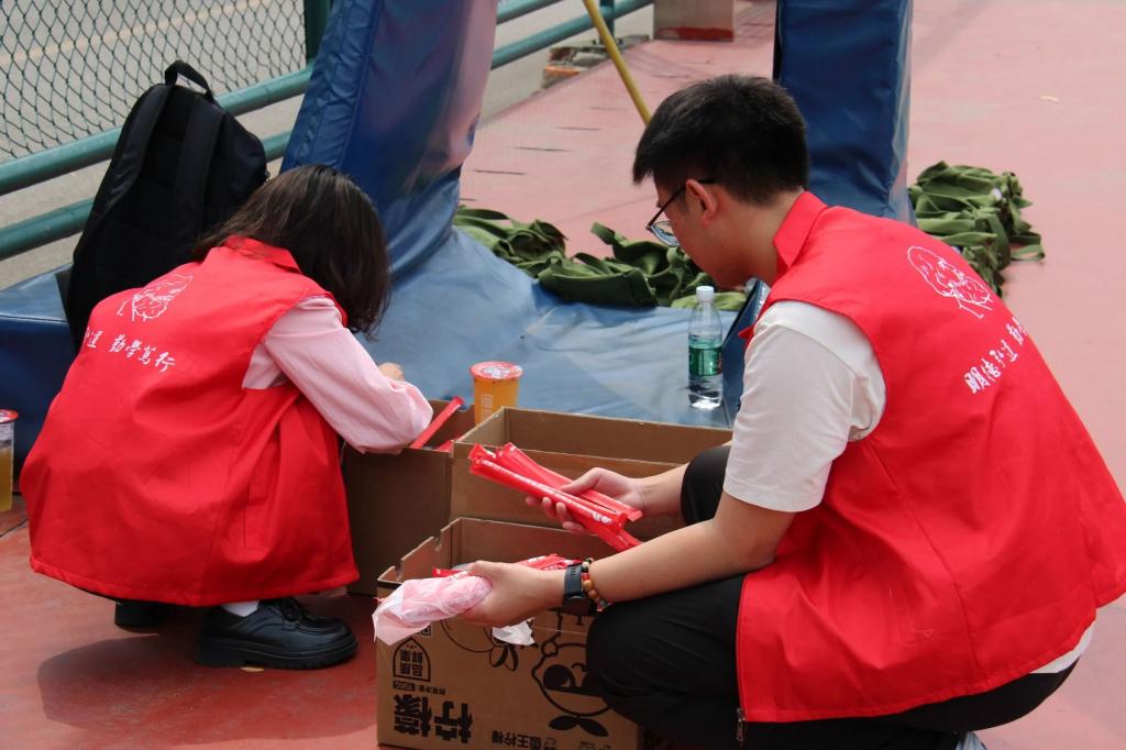 下午,炎炎烈日之下,汗流浃背之时,班助们犹如及时雨般出现,为我们细心的送上了清凉之水,缓解疲惫的身体,温柔而亲切的问候让我们感受到了温暖与力量。
