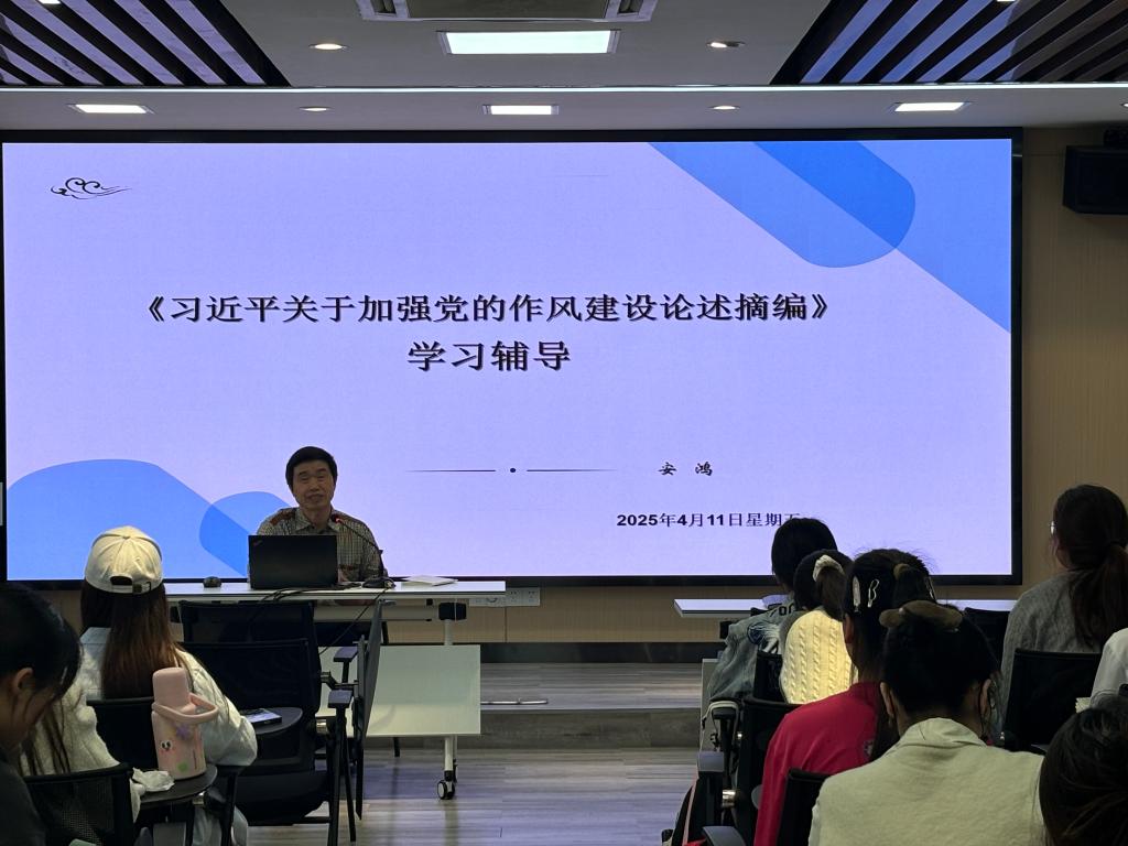 开班仪式结束后,党总支书记安鸿以学习《习近平关于加强党的作风建设论述摘编》为主题开展专题教育,通过理论阐释与案例剖析,系统解读习近平总书记关于加强党的作风建设的重要论述。