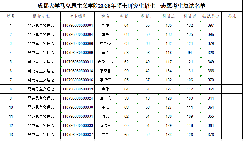 本名单排序以考生编号为准