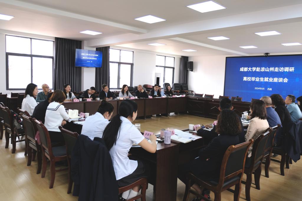 实际与凉山州政府相关部门对与凉山州高校毕业生的就业意愿、就业实际情况展开交流,在交流中,了解凉山州近年来的就业情况和就业形势,探讨如何更好地帮助学生顺利就业、提高就业质量等。凉山州就业服务管理局局长卢英表示,在乡村振兴的背景下,他们希望学校人才培养可以更加契合当下的就业形势,有针对性对开展业指导和培训工作,提高学生的就业竞争力。副校长彭晓琳介绍学校的发展情况和针对就业开展的系列举措,热情邀请凉山州就业服务管理局前往学校,深度了解凉山籍学生的发展情况,开展就业形势分析报告会,共同为学生提供更加精准、高效的就业服务。希望依托学生的专业特点和就业需求,校、地双方通力合作,为学生搭建一个良好的就业平台,帮助他们实现人生价值。