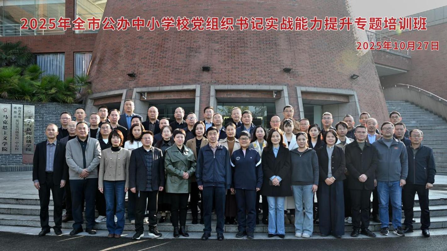 为深入学习贯彻习近平新时代中国特色社会主义思想和习近平总书记对四川工作系列重要指示精神,全面贯彻党的二十大和二十届三中全会、省委、市委全会精神,落实《关于建立中小学校党组织领导的校长负责制的意见》要求,聚焦成都市公办中小学校党组织书记队伍建设,2025年10月27日至29日在成都大学举办了“成都市公办中小学校党组织书记实战能力提升专题培训班”。本次培训课程体系系统全面,涵盖了党的创新理论武装、党组织领导的校长负责制深化落实、意识形态风险防范、校园舆情应对处置、思政课程创新实践等多个关键领域。