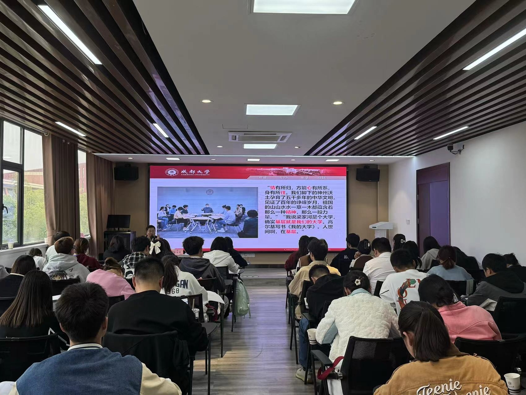 、四川大学党校教授张诚以“学习二十大新党章,争做合格大学生党员骨干”为主题,为50名党员开了一堂生动、活泼的专题讲座。同学们都表示,通过学习,对于新党章有了更清楚的了解,对于如何做合格大学生党员骨干有了更清晰的目标。