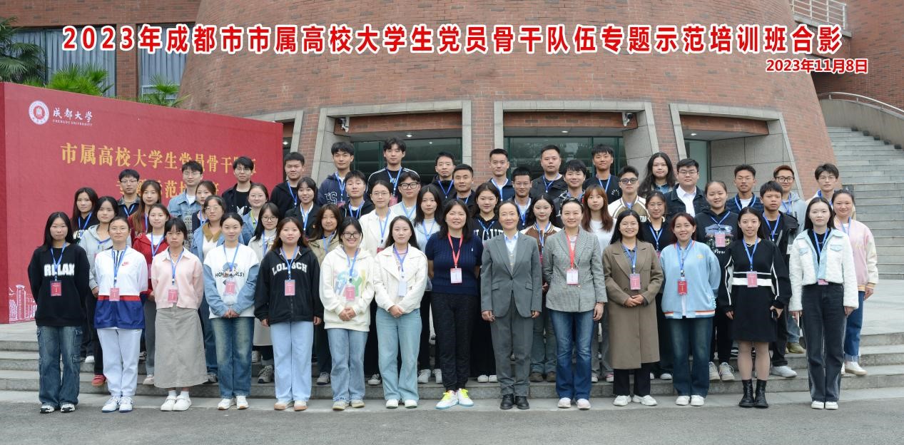 为深入学习贯彻习近平新时代中国特色社会主义思想和习近平总书记关于青年工作的系列论述,优化提升高校基层党建工作,全面加强青年学生党员骨干队伍建设,切实培养一批信念过硬、政治过硬、素质过硬的新时代德才兼备、可堪大用的大学生党员骨干,由成都市教育局主办、成都大学承办的“市属高校大学生党员骨干队伍专题示范培训班”于2023年11月8日——10日在成都大学1306多功能教室胜利召开。来自成都市属高校的50名党员骨干如期报到并进行为期3天的理论和实践学习。