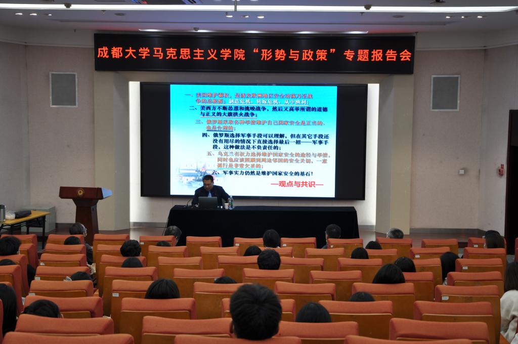 自“乌克兰危机”爆发以来,俄乌局势的变化引起了全世界的关注。为帮助师生全面了解“乌克兰危机”,深入思考俄乌局势对我国安全环境的冲击和影响,3月24日,国家国防教育讲师团成员、全军“外宣”专家、中央电视台军事评论员、中国军视网“军视环球播报”主讲、国防大学韩旭东教授在成都大学博物馆报告厅作“形势与政策”专题报告会。csgo投注