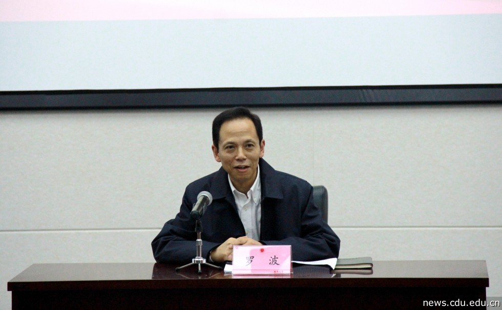 讲课过程中,罗波纵论国际风云,撷取时事热点,用生动翔实的数据、案例、表格全面深入地阐释了党的十九大的主要精神与亮点,总结了党的十九大取得的重要成果,梳理党的十九大报告提出的新思想、新论断、新提法、新举措。罗波还紧密结合成都建设全面体现新发展理念的国家中心城市、成都教育事业发展现状,以及成都大学事业发展规划,强调学习贯彻党的十九大精神,重点要在学懂、弄通和做实上下功夫。罗波强调,学校在学习宣传贯彻落实党的十九大精神工作中,要按照市委市政府的要求,结合高校办学实际,不断加强高校思想政治工作,深化教育领域综合改革,加快推进高水平应用型综合大学建设,推动十九大精神落地落实,积极主动融入成都全面体现新发展理念的国家中心城市建设实践,为建设成为与成都国家中心城市地位相匹配的高水平应用型综合大学而不懈奋斗。