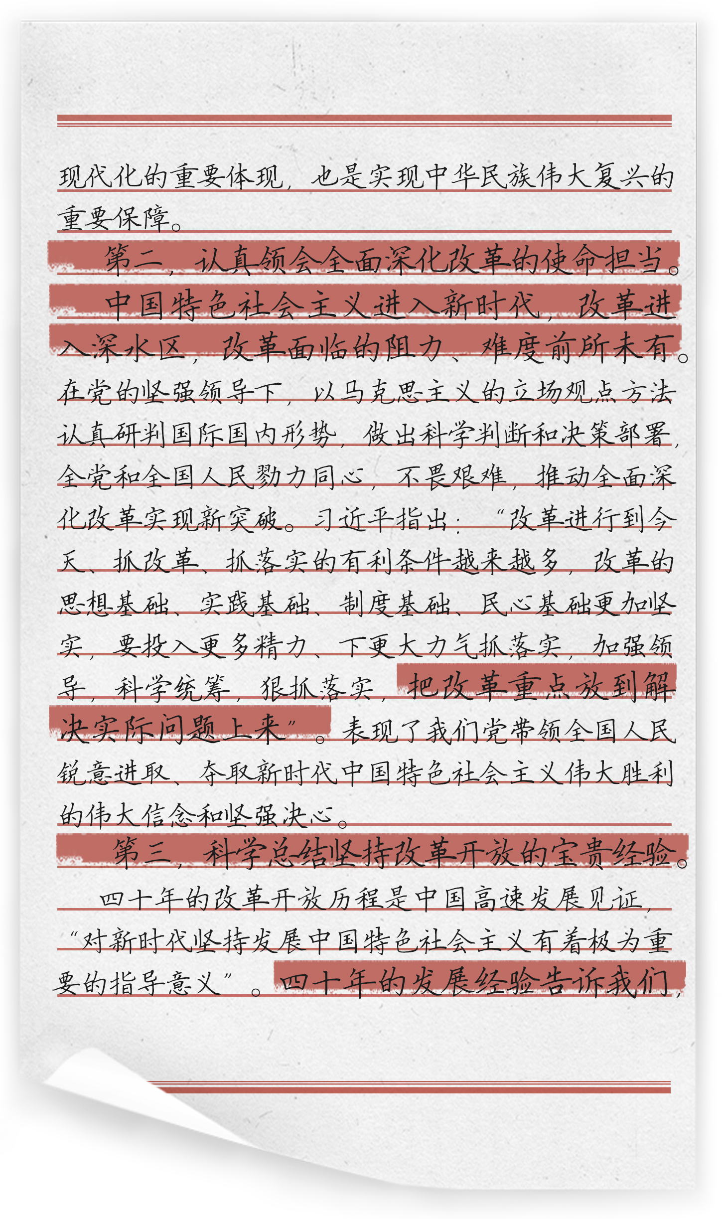 《推动全面深化改革实现新突破》是《习近平谈治国理政》第三卷第六专题,共收录了9篇习近平总书记在2018年2月到2019年11月的部分讲话和讲话要点,是党的十九届三中全会以来,习近平总书记对推进全面深化改革实现新突破的重要论述。围绕“切实把思想统一到党的十九届三中全会精神上”的主题,习近平总书记结合全会提出的指导思想、总体思路和目标任务,基于马克思主义的立场观点和方法,深刻表达了必须坚持和加强党的领导,坚持马克思主义指导地位,以人民为中心推动全面深化改革实现新突破的历史使命,发出时代强音。围绕着改革进入深水区,必须要有担当作为的勇气和决心,面对全面深化改革,提出“集中力量打攻坚战”,扎实推进改革的重要指示。深刻总结了四十年改革开放的宝贵经验,提出了改革开放成功的9个“必须坚持”,在加强党的领导和建设、满足人民的美好生活向往、坚持马克思主义理论和社会主义道路、增强综合国力、加强党的建设等方面总结经验,是党和人民的宝贵精神财富。