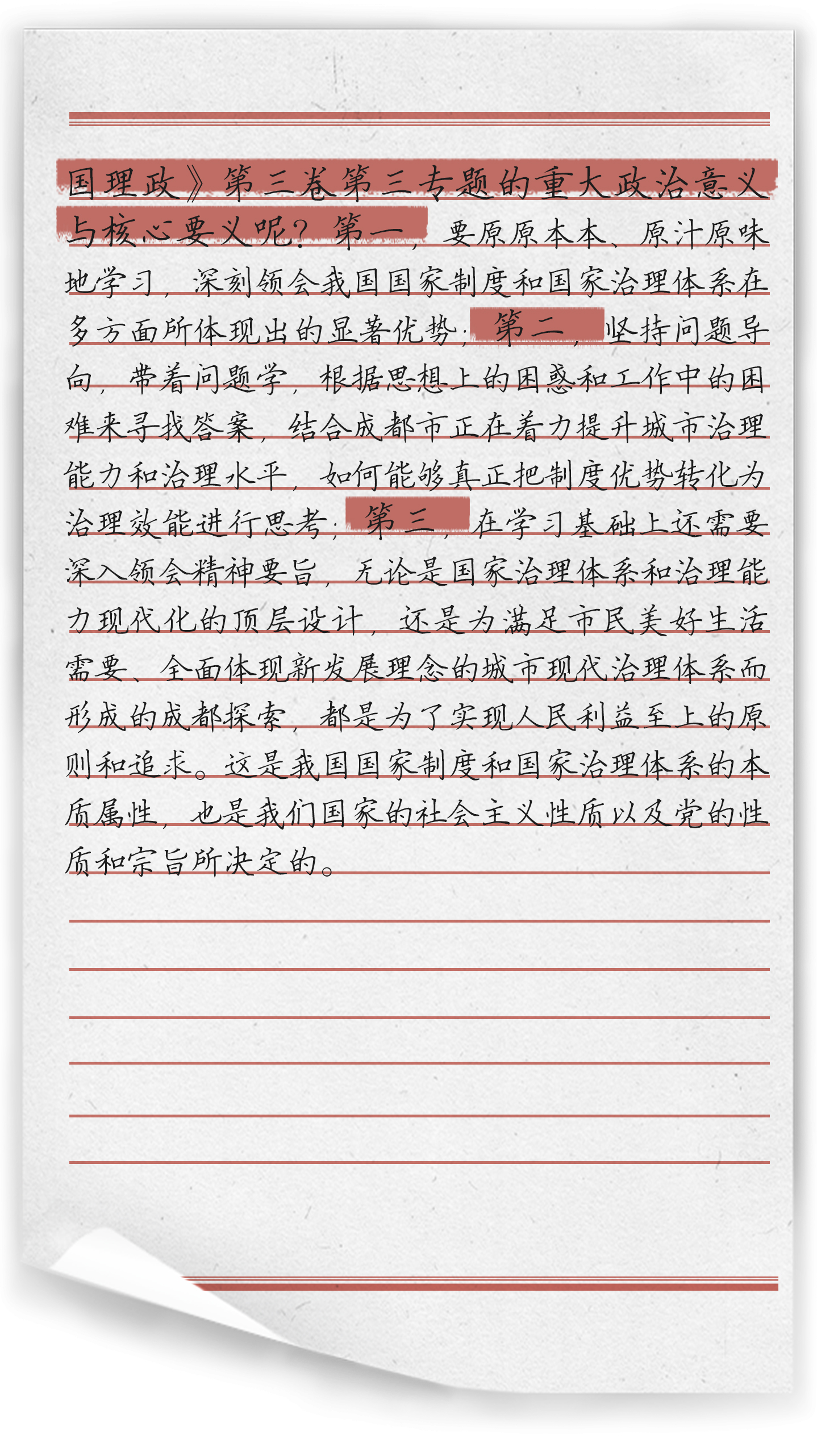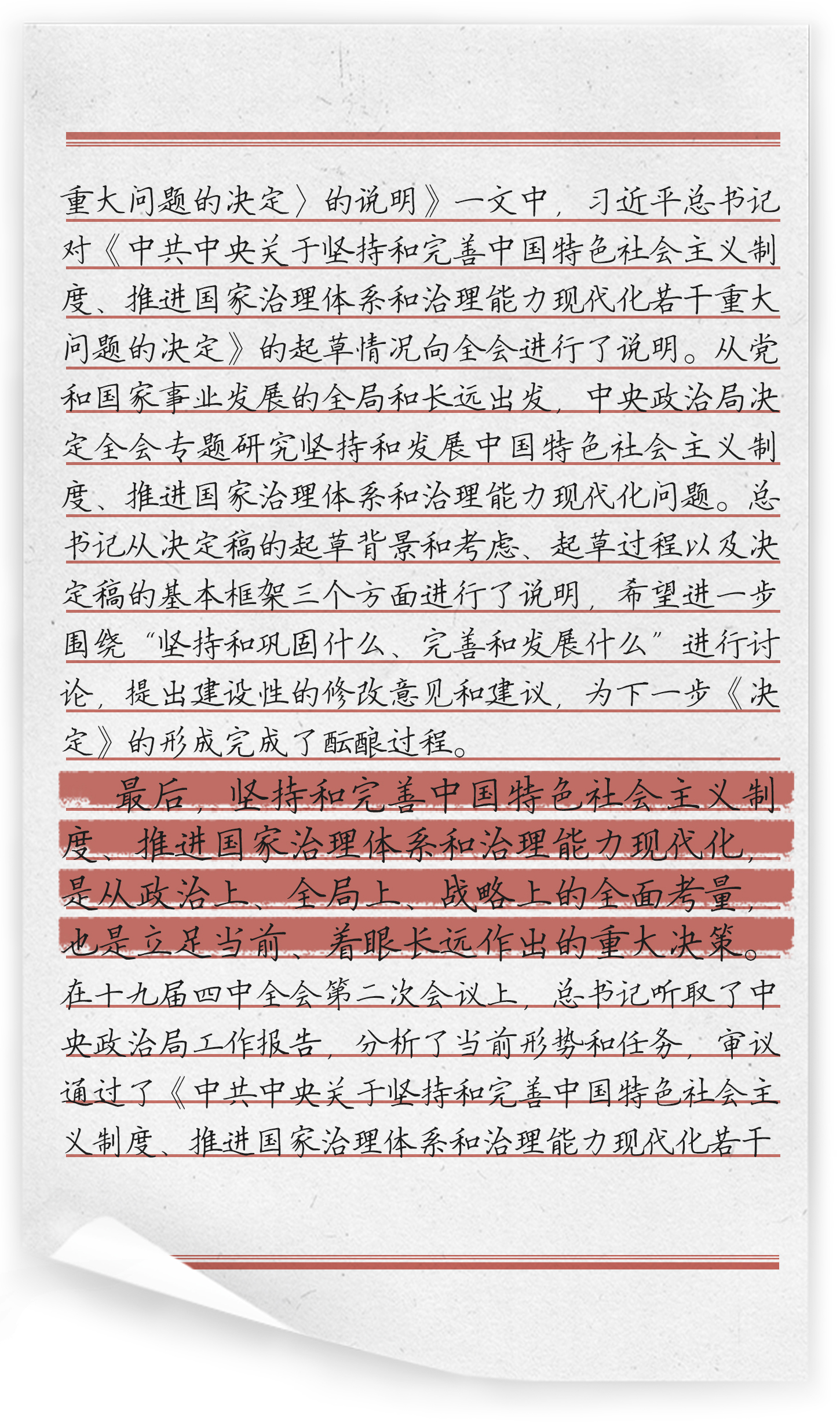 “完善和发展我国国家制度和治理体系” 作为《习近平谈治国理政》第三卷的第三专题,共收录习近平总书记2019年7月至2019年10月期间的3篇讲话或讲话要点、节选。这一系列讲话是以习近平同志为核心的中共中央,贯彻落实党的十九大决策部署的一个重要举措。从党和国家事业发展的全局和长远出发,坚持和发展中国特色社会主义制度、推进国家治理体系和治理能力现代化问题。这是从政治上、全局上、战略上的全面考量,也是立足当前、着眼长远作出的重大决策。同时,全面回答了在我国国家制度和治理体系上应该坚持和巩固什么、完善和发展什么这个重大政治问题。