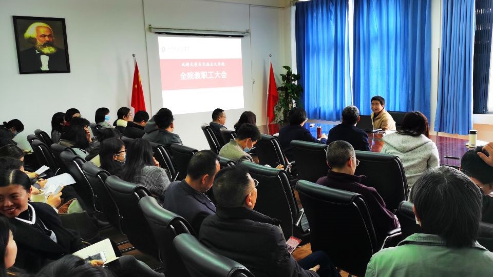 在6224会议室召开全院教职工大会,传达学习习近平在出席2021年2月20日党史学习教育动员大会的重要讲话精神。会议由安鸿书记主持。