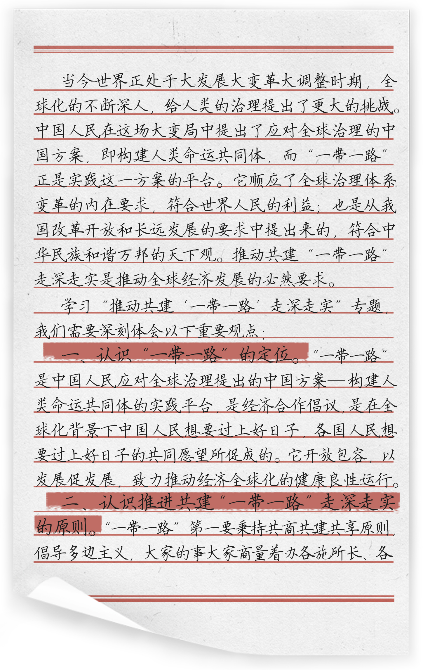 自2013年9月,习近平总书记在哈萨克斯坦纳扎尔巴耶夫大学作演讲,提出共同建设“丝绸之路经济带”的构思至今,“一带一路”建设已取得显著的成果。“作为《习近平谈治国理政》第三卷的第十八专题,推动共建‘一带一路’走深走实”这一专题共收录了习近平总书记2018年1月至2019年4月期间的4篇讲话或讲话要点、节选。第一篇《打造一条跨越太平洋的合作之路》中说到,要延续我们先辈开辟的中拉“太平洋海上丝绸之路”,共建“一带一路”新蓝图,打造一条跨越太平洋的合作之路,构建中拉更美好的明天。第二篇《加强战略和行动对接,携手推进“一带一路”建设》中说到,4年的携手同行全面带动中阿关系进入全方位合作的新阶段,中方愿同阿方加强战略和行动对接,并提出了未来两方推进“一带一路”建设的方向和方法。第三篇《共同绘制好“一带一路”的“工笔画”》总结了5年来“一带一路”建设所推动的中国的发展,重申了“一带一路”的性质,并提出了下一阶段推进“一带一路”工作的基本要求是在保持健康良性发展势头的基础上向高质量发展转变。第四篇《推动共建“一带一路”高质量发展》提出了推动“一带一路”高质量发展的原则,并指出共建“一带一路”,关键是互联互通,以及怎样互联互通。