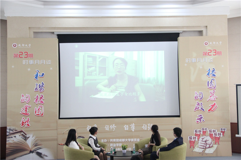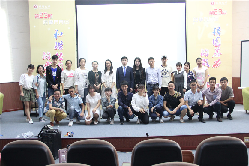 承办的第23期“时事月月谈”在9教演播大厅举行,本期“时事月月谈”的主题是“关注校园暴力”,活动专门邀请了琨爵律所律师朱界平,政治csgo投注