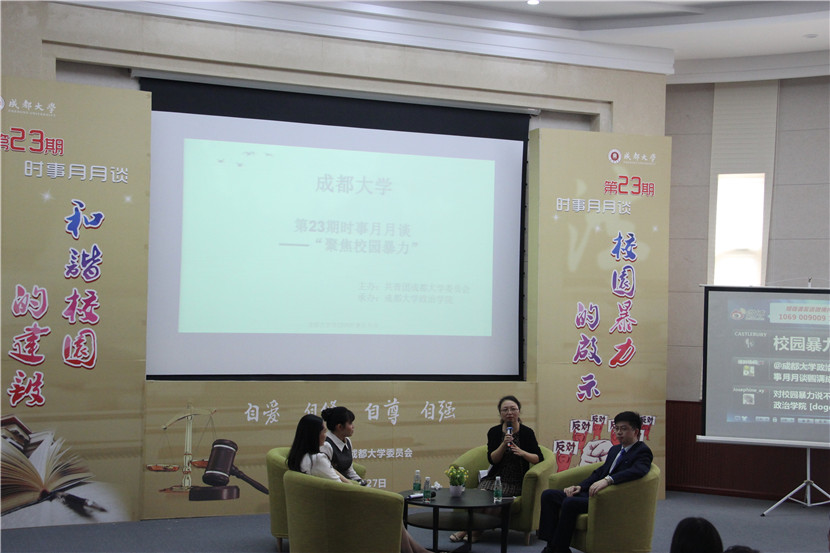 师生的互动和嘉宾们精彩专业的回答和点评,不仅是一次良好的校园普法宣传,也引导所有参加同学对“大学生在解决校园暴力中的作用”这一问题有进一步的思考。
