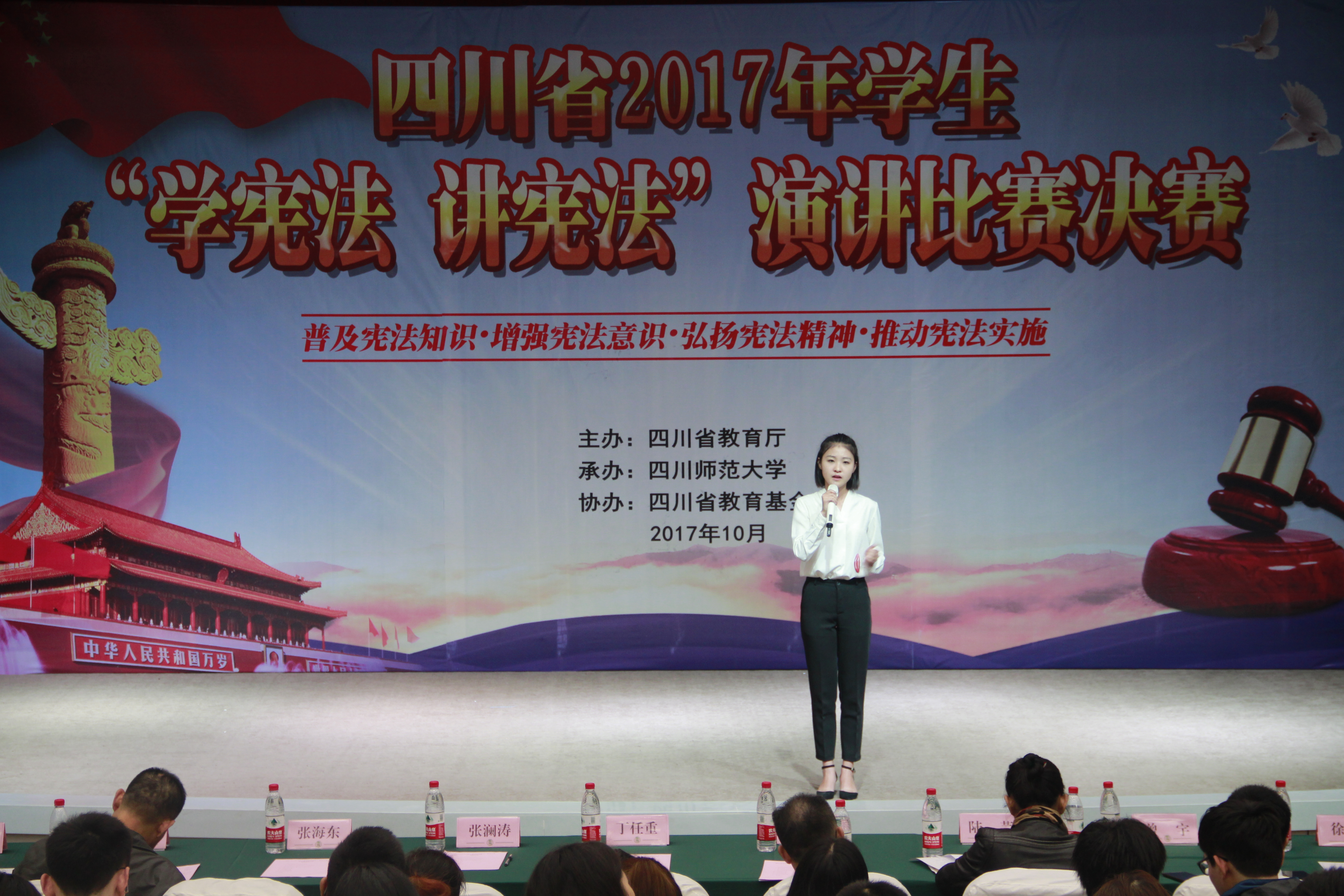 (文/杨启金、史浩岑 图/杨启金)10月16日,由四川省教育厅主办的四川省2017年学生“学宪法 讲宪法”演讲比赛决赛在四川师范大学举行。省教育厅副厅长张澜东、总督学傅明、省教育基金会副理事长狄志军出席比赛活动。csgo博彩
