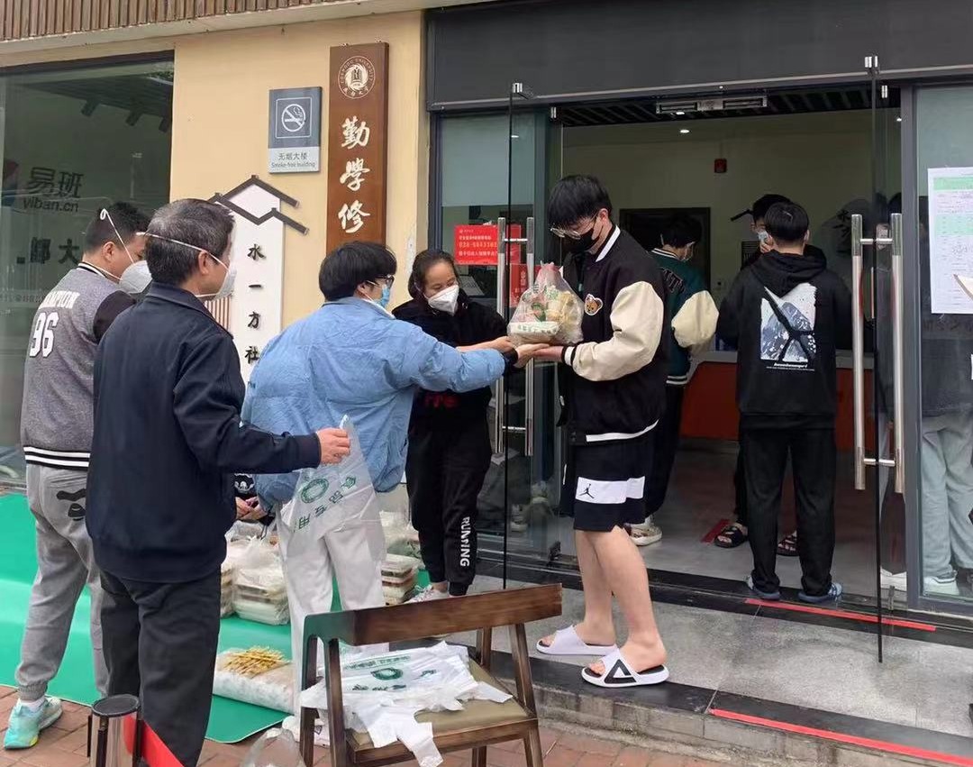 党总支书记安鸿住进学生公寓,每天穿梭在学生宿舍八栋各个楼层,想学生所想,急学生所急,安排楼栋学生一日三餐以及生活物资、检查学生全员核酸检测情况、排查安全隐患、查看消毒情况等。