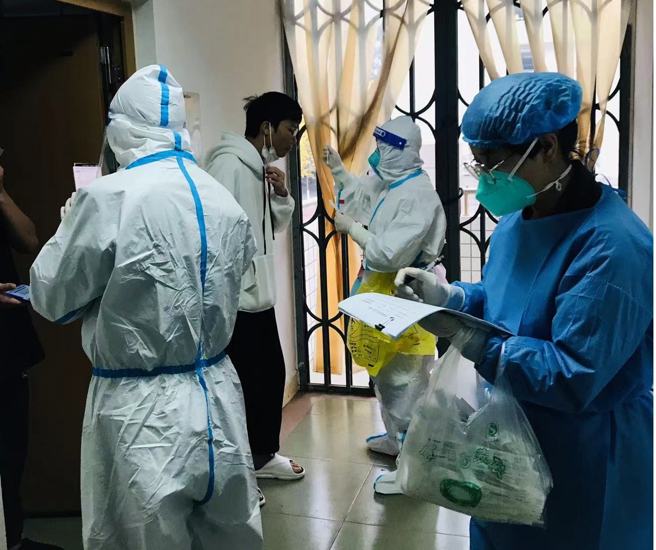 教师志愿者化身引导员、扫码员、录入员,与医护人员及宿舍管理人员、志愿者们并肩战斗,全程配合。大家分工明确、配合默契,在各自的岗位上尽职尽责,用实际行动筑牢防疫堡垒。他们细致入微地开展工作,保障了核酸检测工作的顺利完成。