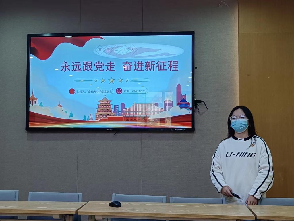 习近平总书记强调,社区工作是一门学问,要积极探索创新,通过多种形式延伸管理链条,提高服务水平,让千家万户感受到党和政府的温暖。本次社区宣讲的主题是“贯彻二十大精神,促进社区发展”,同学们热情洋溢、图文并茂地将二十大内容与成都市社区建设相融合,提出要让社区建设与生态文明建设和谐发展等观点,为成都市社区健康可持续发展建言建策,本次宣讲展现出成大学子积极向上的精神风貌。