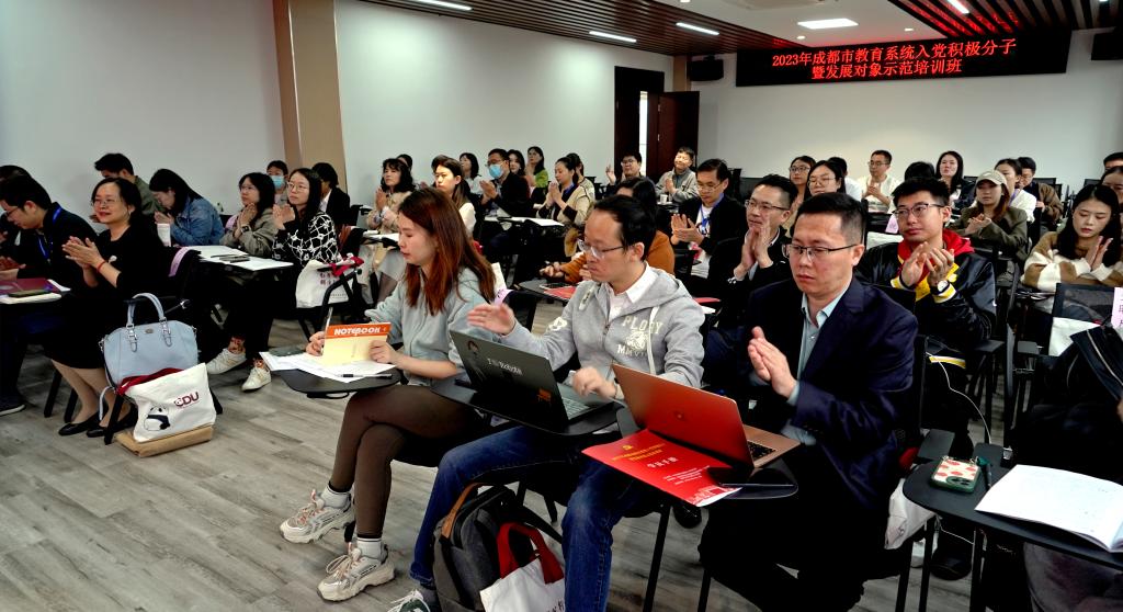 培训中重视理论引领,邀请省内权威专家,围绕党的二十大精神与教育强国建设、党员干部的理想信念与政德建设、加强和规范党内政治生活、中国共产党为什么能、中国式现代化与成都发展等开展专题讲座,以专家引领和理论指导的方式,帮助学员了解中国共产党的宗旨、法纪法规,深刻认识中国共产党是中国特色社会主义的领导核心,深刻体悟党的执政能力和伟大成就。同时,以优秀共产党员“三尺讲台守初心”的先进事迹为榜样,以优秀党员践行教育初心敬业爱生的优秀品质,引领学员学习身边优秀共产党员坚守初心严格自律的优良作风、对党忠诚积极奉献的敬业精神,进一步加深学员对“全心全意为人民服务”的党的宗旨的理解,强化入党积极分子和发展对象,对中国共产党的深刻认识。