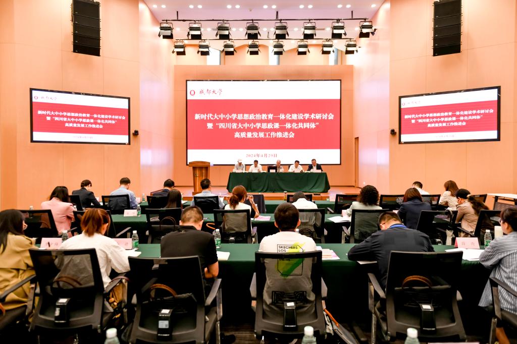 4月29日,新时代大中小学思想政治教育一体化建设学术研讨会暨“四川省大中小学思政课一体化共同体”高质量发展工作推进会在我校生活服务中心召开。
