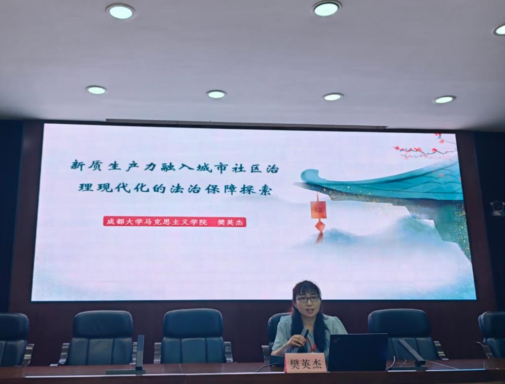 副院长樊英杰副教授作了题为“新质生产力融入城市社区治理现代化探索”的主题发言。发言就新质生产力在城市社区中的融合进行介绍并于与会者进行讨论,获得与会者的一致好评。