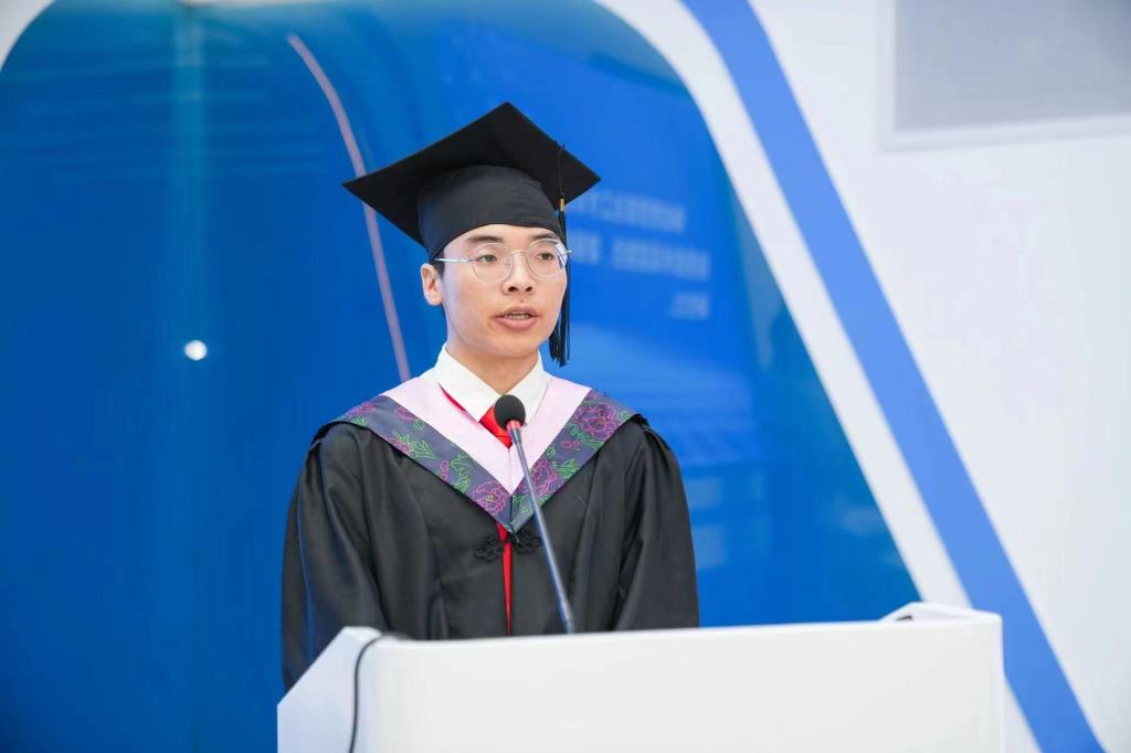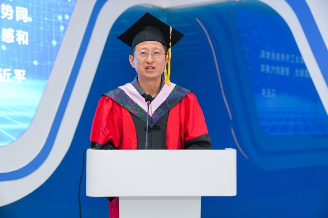 授位典礼在庄重的氛围中拉开帷幕,全体师生肃立,共唱《国歌》。随后,校党委专职副书记胡秀强向毕业生寄语。他向即将迈入社会、展翅高飞的毕业生们致以最诚挚的祝贺,并对他们寄予了四点殷切的希望与嘱托:要始终坚守眼中的那束光;坚持奋斗的那股劲;坚信出发时的那个梦;还要保持积极乐观豁达的态度,认真工作,快乐生活,学会减压。他向所有毕业生送上最美好的祝愿:愿大家未来前程似锦,在人生道路上书写新的辉煌篇章!