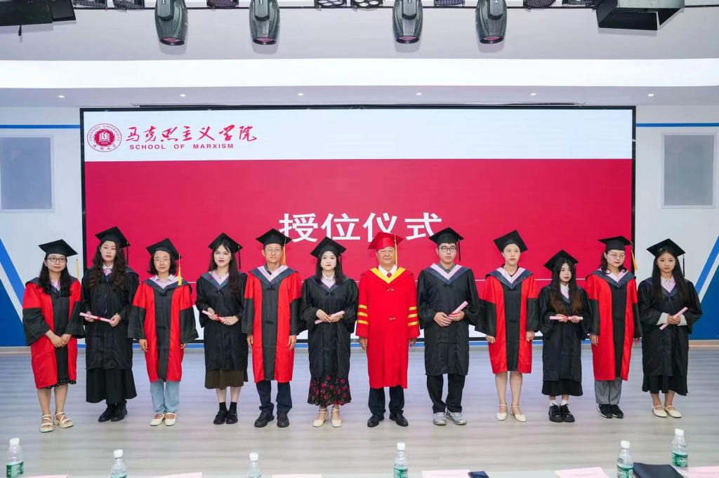 随后,典礼迎来了最为庄重的授位仪式。毕业生们身着学位服,胡秀强教授、院长屈陆等教师依次为毕业生们授予学位,毕业生们穿上学位服,承载着母校的不舍与祝福,怀揣着理想奔向下一个远方。