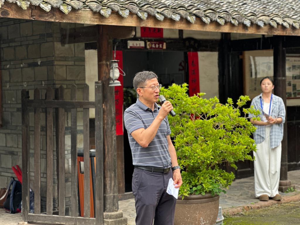 仪式伊始,贺杰馆长详细介绍贺麟先生的学术贡献与故居修复历程。他指出,贺麟先生是天府文化脉络中兼具巴蜀学人与现代哲学大家特质的标志性人物,更是巴蜀地区传统思想向现代转型的重要推动者,其“心怀家国、躬耕真理”的精神深度契合天府文化的价值内核。此次基地揭牌既是对贺麟先生哲思精神的传承,更是思政教育扎根历史土壤的生动实践,强调贺麟故居将以“鲜活思政教材”的定位,助力我校思政教育专业的教学。