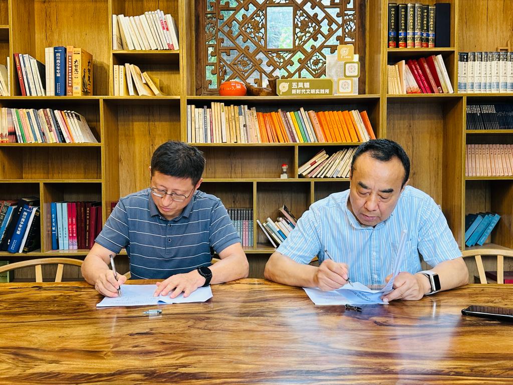 揭牌仪式后,双方围绕“深化校馆合作、赋能思政教育、传承天府文化”召开座谈会,明确将进一步挖掘故居文化内涵、发挥校馆距离优势,推动文化资源与思政教学深度融合。屈陆院长与贺杰馆长现场签订基地建设合作协议,为后续长效合作奠定坚实基础。