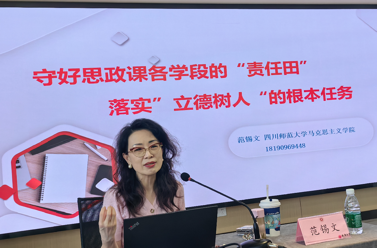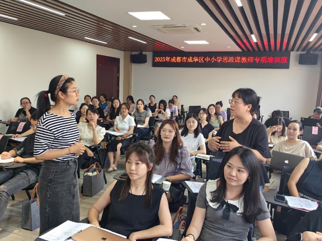 本次培训,还邀请了成都市教科院、金牛区教科院、成都七中育才学校、成华小学、双流中学等思政教研员、教学一线优秀教师分享中小学思想政治教育教学经验,如:素养导向下的高品质道法课堂建设、学校党建与德育深度融合等,从大思政与思政课堂建设、跨学科知识学习兴趣培养、时政热点的价值引领、人文关怀的课堂氛围营造、源自生活的课程资源整合、主动探究的学习模式构建等方面,传授了中小学优质思政课的方法与技巧,名师引领经验互鉴,不同学校思政教育的创新探索、一线教师和教研员的教育教学经验,为参培教师互学共研、拓展思路提供了丰富的学习资源,大家对学校思政教育有了更加全新的认识。