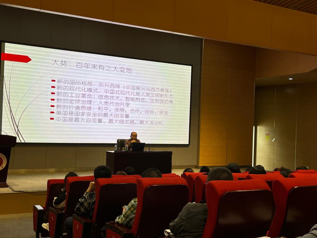 院长陈驰教授做了主题为《百年未有之大变局——中美战略博弈》的讲座。他从百年未有之变局、 当前世界形势:人类再次走到了十字路口、美国与战争、当前国际热点:“俄乌冲突及其影响”、国内热点:“台海危机与祖国统一”五个方面对中美战略博弈进行了解读和剖析。陈教授讲完专题讲座后,副院长邱晓霞对陈教授的精彩讲座进行高度评价和衷心感谢,她讲到,陈驰教授的讲授浅显易懂,语言幽默诙谐,让老师们对世界局势和国内形势有了清晰的了解。