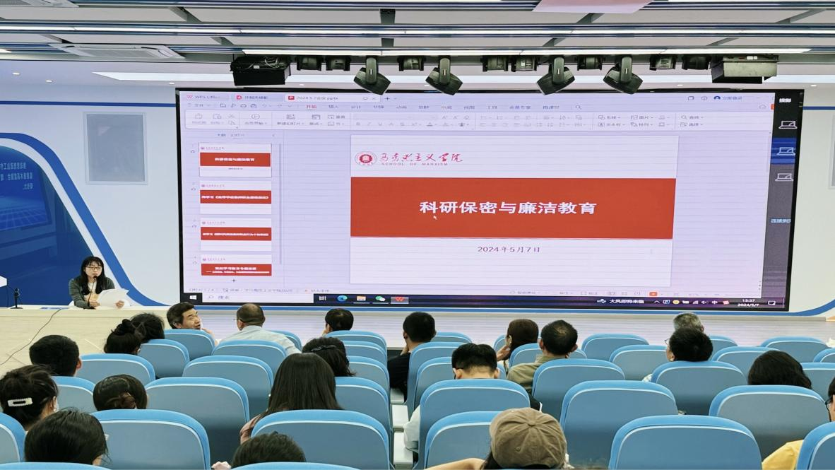 首先,樊英杰副院长对科研保密教育与廉洁教育的内涵和重要性进行了深入解读。她指出,科研保密工作不仅是科研工作的需要,更是维护国家安全、保障学术成果的关键举措。马院教师作为科研人员必须充分认识到科研保密的严肃性,必须严格遵守保密规定,确保各类研究项目的安全与规范,树立良好的学术风气。