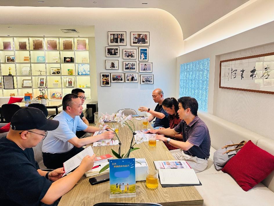 党总支书记安鸿、分管教学工作的副院长邱晓霞、“中国近现代史纲要”课程教研室主任彭波和朱昊老师一行四人前往四川报业博物馆(以下简称“报博馆”),在“阿来书房”与报博馆谭友富馆长及相关负责人展开洽谈。双方围绕共建“成都大学思想政治理论课教学基地”挂牌事宜,以及后续深化合作等内容进行深入探讨。